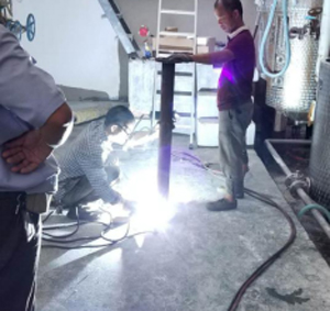 焊接:準備好所有的配件,我們就要開始焊接過程了:將夾持用的法蘭,固定的螺紋底座安裝于管道中。