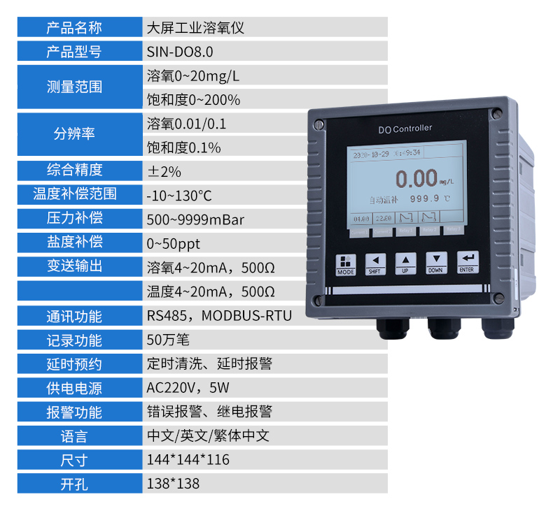 | 應用行業 | 聯測_SIN-DO8.0膜法溶氧儀廣泛應用于水,鍋爐水,海水,養殖,水族館,地表水,工業污水,都市廢水,環境監測,食品生產過程等。 |