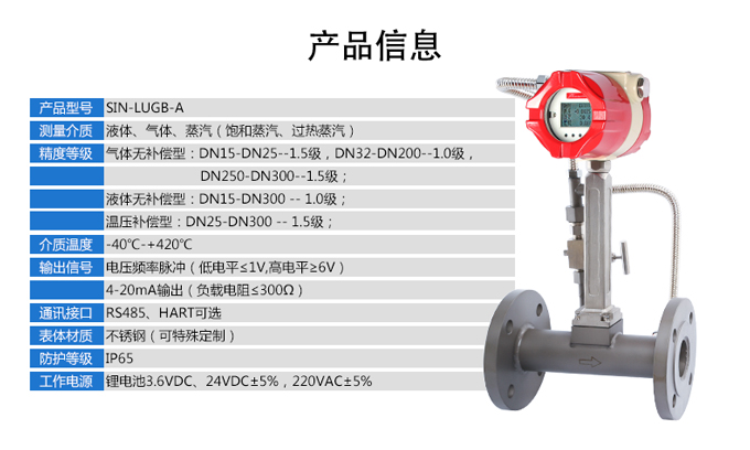 LUGB-SIN-A渦街流量儀表廣泛用于供熱公司、熱力公司、化工行業等行業,對過熱蒸汽、飽和蒸汽、壓縮空氣和一般氣體、水和液體的計量和控制。加厚本體,可有效避免現場管道振動帶來的數據波動和誤差。多用于高溫場合,例如過熱蒸汽等工況。