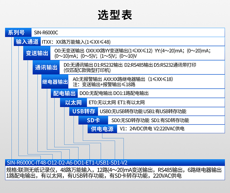 SIN-R6000C系列彩色無紙記錄儀48路萬能輸入,可帶18路報(bào)警輸出,12個(gè)變送輸出,RS232/485通訊接口,以太網(wǎng)接口,微型打印機(jī)接口和USB接口,SD卡插座;可提供傳感器配電;具有強(qiáng)大的顯示功能,實(shí)時(shí)曲線顯示,歷史曲線追憶,棒圖顯示,報(bào)警列表顯示。