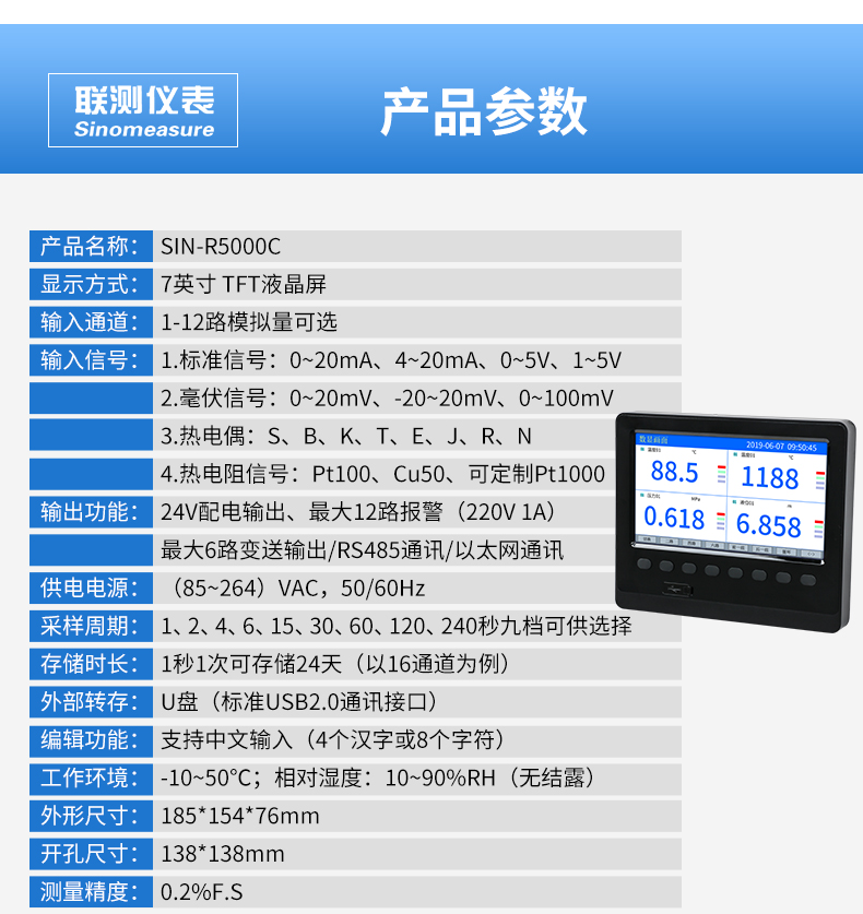 應用行業 SIN-R5000C無紙記錄儀 12 路萬能輸入(可組態選擇輸入:標準電壓、標準電流、熱電偶、熱電阻、毫伏等)。