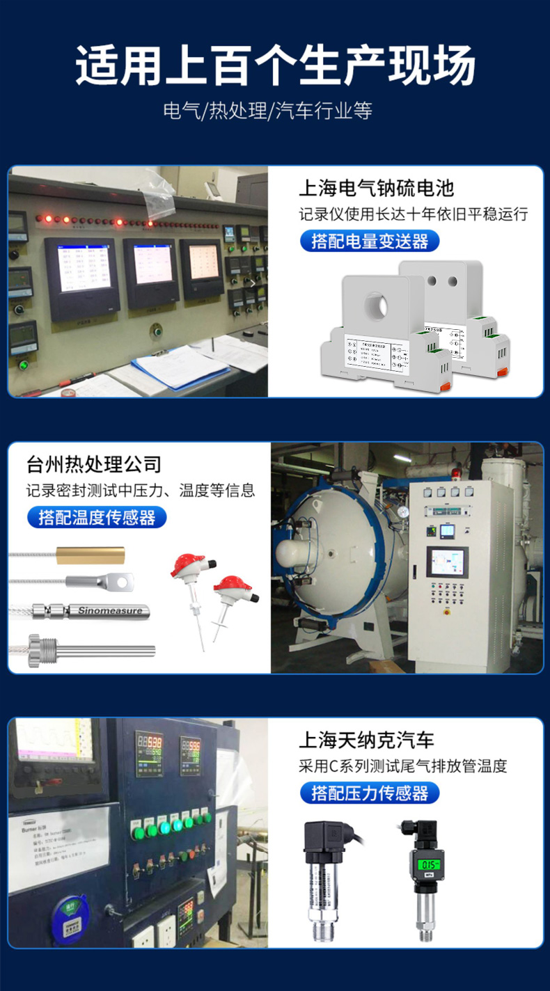 應用行業 聯測儀表SIN-R200T無紙記錄儀可輸入電流、電壓、熱電偶、熱電阻和頻率等工業信號。